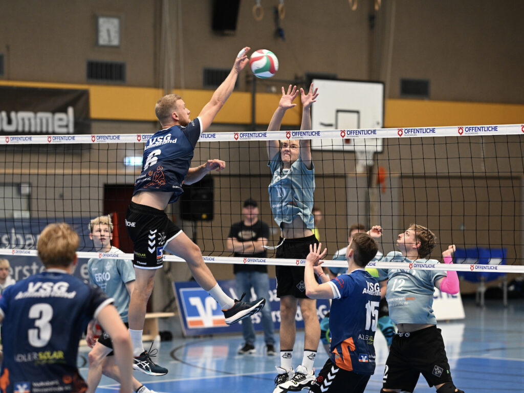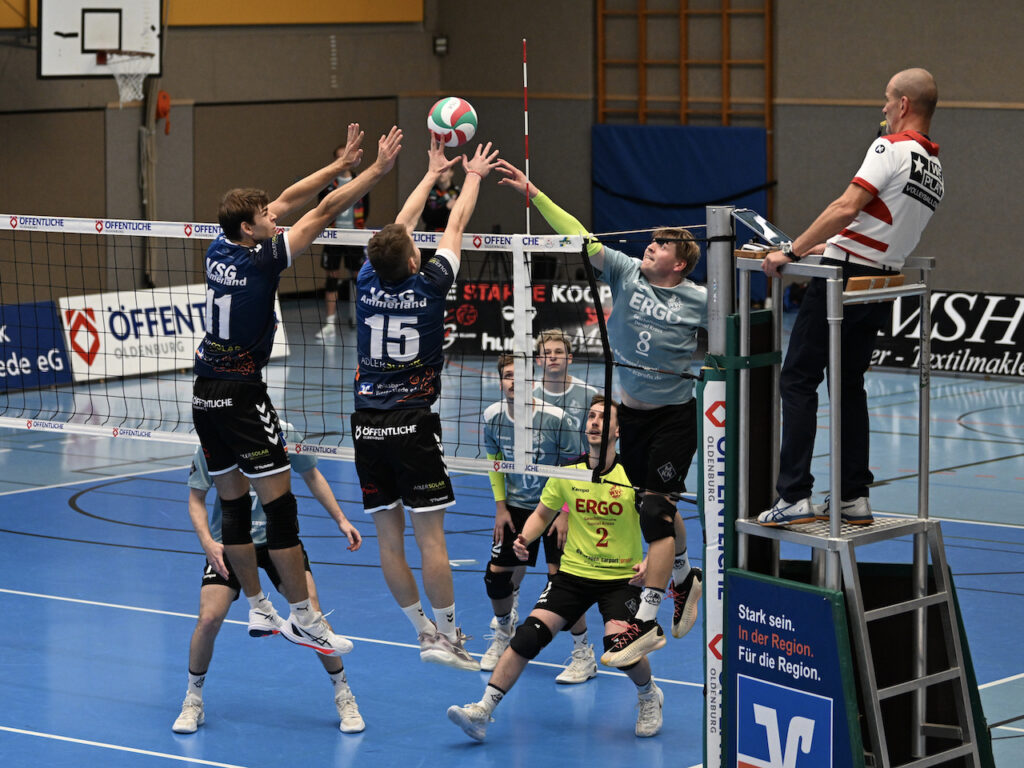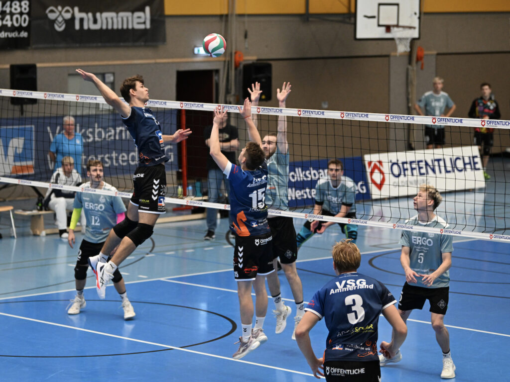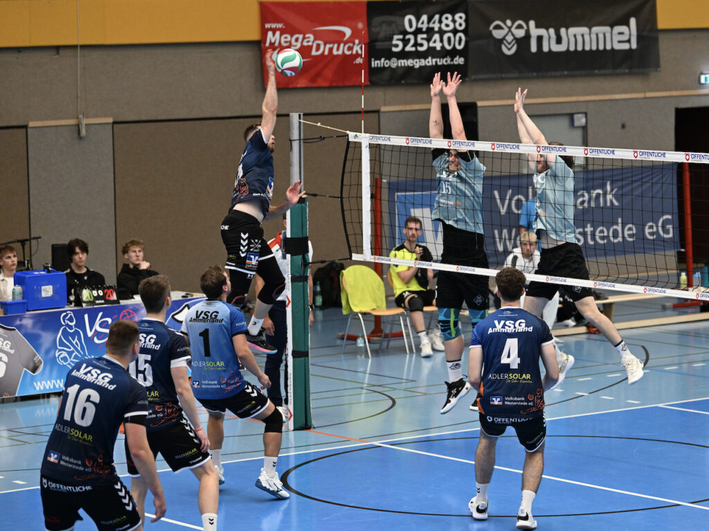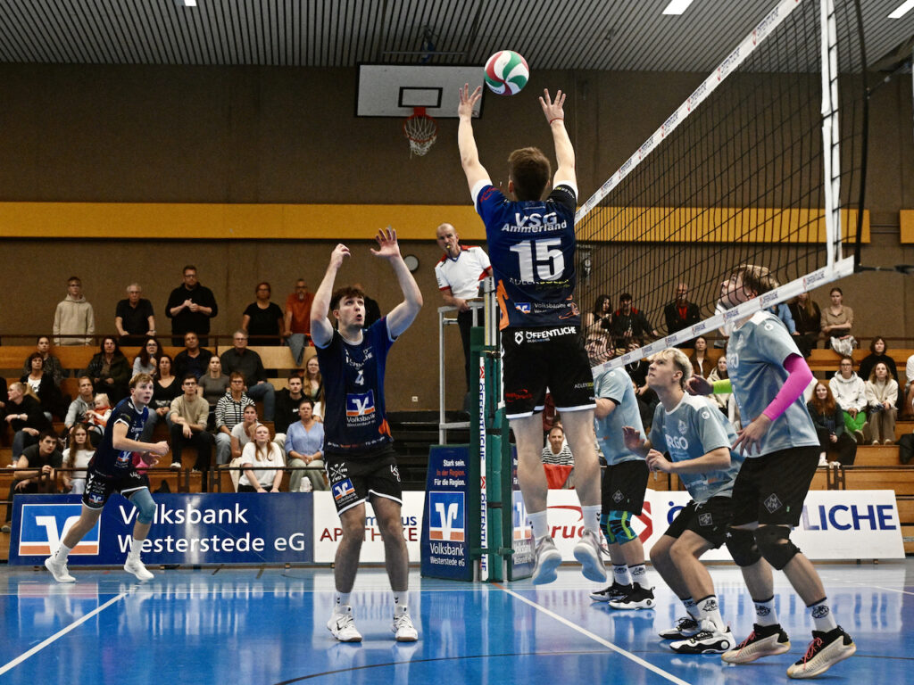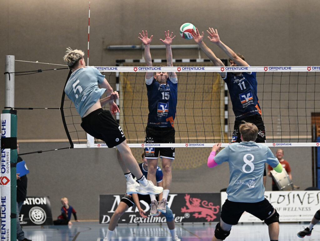 Unsere Regionalliga-Volleyballer sind mit einem überzeugenden 3:0-Sieg (29:27, 25:18, 25:20) gegen den Wolfenbütteler VC in die Saison gestartet. Vor über 150 Zuschauern hatten die Ammerländer nur im ersten Satz Probleme. Den ersten MVP-Titel der Saison sicherte sich verdient Außenangreifer Sören Riewe, der ein tolles Spiel machte. Ein ausführlicher Nachbericht und unser Top10-Video folgen, ein paar Fotos gibt es schon jetzt.