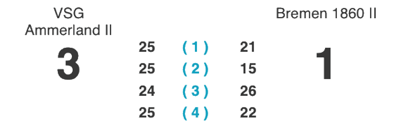 Die Regionalliga-Volleyballer der VSG Ammerland haben ihr Heimspiel gegen den MTV Salzgitter mit 3:1 (16:25, 25:20, 25:21, 25:21) gewonnen. Trotz Startschwierigkeiten sichern sich die Ammerländer dank taktischer Anpassungen den vierten Saisonsieg und springen in der Tabelle auf den zweiten Rang. Schwieriger Start und taktische Korrektur Die Partie begann für die VSG alles andere als optimal.