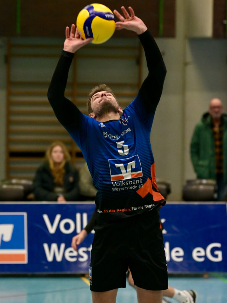 Auch im zweiten Satz änderte sich das Bild nicht. Die Annahmeachse um Libero Focko Alex stand stabil, so dass Zuspieler Jannik Koenigs ein variables Angriffsspiel aufziehen konnte. Insbesondere Außenangreifer Timo Pundt und Diagonalspieler Anton Klots punkteten zuverlässig. Die VSG Ammerland spielte weiter auf hohem Niveau und setzte sich erneut mit 25:18 durch.