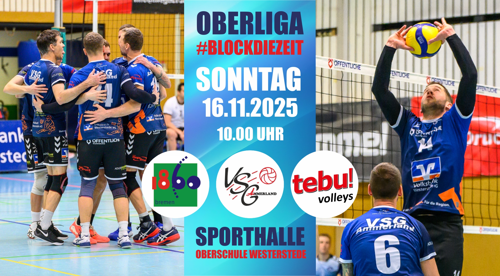 Die Regionalliga-Volleyballer der VSG Ammerland haben ihr Heimspiel gegen den MTV Salzgitter mit 3:1 (16:25, 25:20, 25:21, 25:21) gewonnen. Trotz Startschwierigkeiten sichern sich die Ammerländer dank taktischer Anpassungen den vierten Saisonsieg und springen in der Tabelle auf den zweiten Rang.… Erste gewinnt ohne zu überzeugen weiterlesen - Arbeitssieg – Erste schlägt Salzgitter mit 3:1